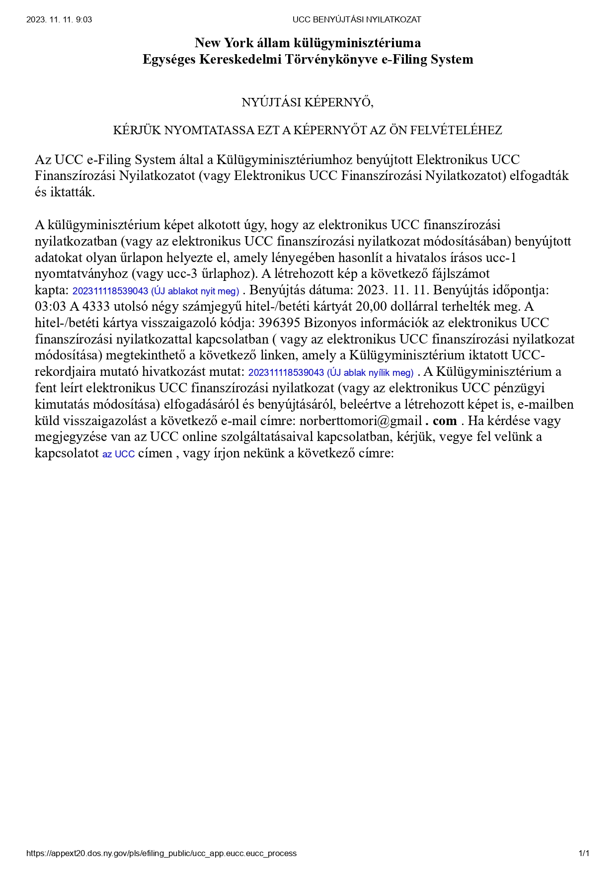 Ezen a weboldalon közzétett UCC Dokumentumok - UCC Financing Statement-ek (Finanszírozási